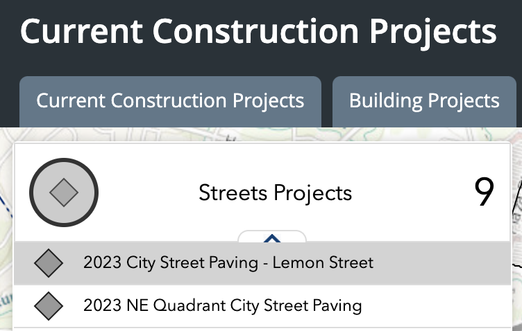 You can find more information about current construction projects, including the Eastbound Connector Bike Route, on the City's website. Open the Construction Map and then select Streets Projects from the list of tabs across the top of the page. Select 2023 City Street Paving - Lemon Street for more information.