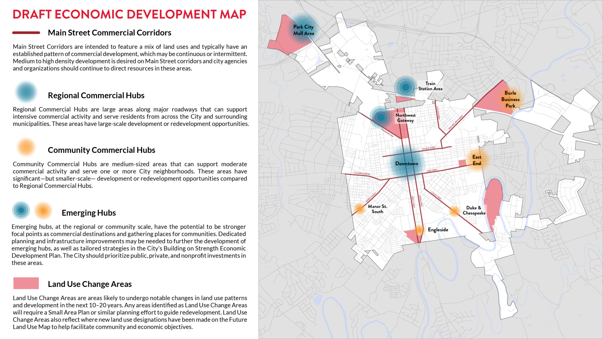 Above is the draft Economic Development Map for Lancaster's next comprehensive plan.